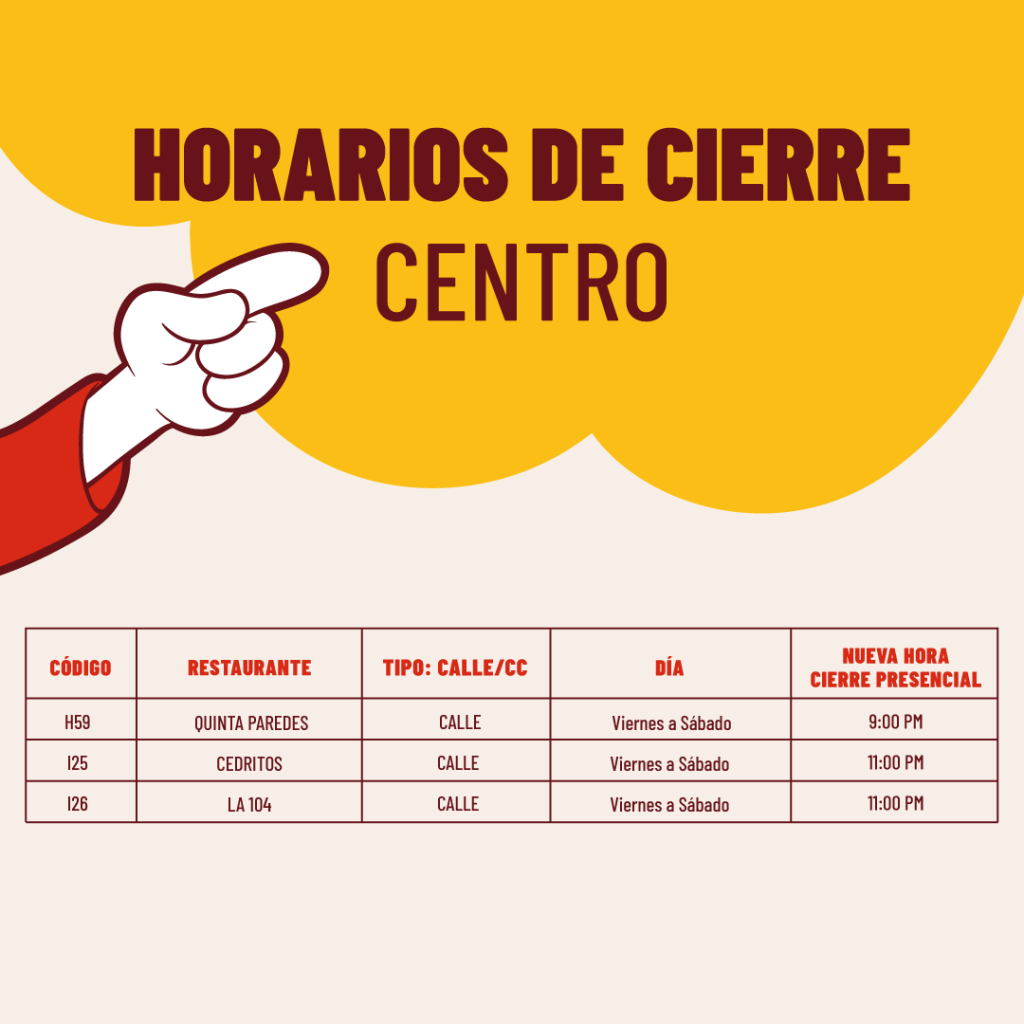 Horarios de cierre Centro